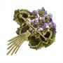 Brož ze žlutého 14 karátového zlata ve tvaru fialky. Listy a květy jsou vyřezány z nefritu a ametystu, zdobené drobnými brilianty.
