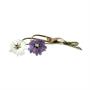 Brož z růžového zlata ve tvaru květiny. Květy jsou vyřezány z ametystu a křišťálu. Zdobeno brilianty 0,35ct.