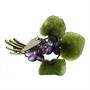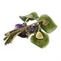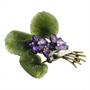 Brož ze žlutého 14 karátového zlata ve tvaru fialky. Listy a květy jsou vyřezány z nefritu a ametystu, zdobené drobnými brilianty.