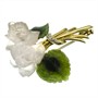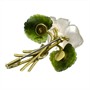 Brož ze žlutého zlata zdobená řezanými drahými kameny (růženín, nefrit, brilianty) ve tvaru květiny.