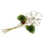 Brož ze žlutého zlata ve tvaru květiny. Okvětní lístky vyřezávané z růženínu, listy vyřezány z nefritu, zdobeno drobným briliantem a korálem.