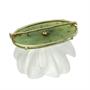 Zlatá brož ve tvaru leknínu vyřezávaná z nefritu a křišťálu, s briliantem 0,08 ct. Žluté zlato Au 585/1000, 19,15 gr. 20. léta 20. století, Čechy. K dispozici osvědčení z puncovního úřadu. Délka : 4 cm, šířka: 3,5 cm.