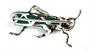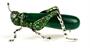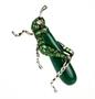 Zlatá brož ve tvaru luční kobylky, zlato ryzost 585/1000, Tělo kobylky je ze zeleného achátu, dále je kobylka osazena 42 zelenými granáty o celkové hmotnosti 0,50 ct a 2 diamanty o celkové hmotnosti 0.02 ct. Hmotnost kobylky 4,98 g, rozměry 3,5 x 1,5 cm.