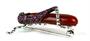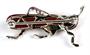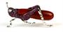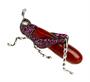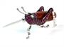 Zlatá brož ve tvaru luční kobylky, zlato ryzost 585/1000, Tělo kobylky je z hnědého achátu, dále je kobylka osazena 42 rubíny o celkové hmotnosti 0,60 ct a 2 diamanty o celkové hmotnosti 0.02 ct. Hmotnost kobylky 5,21 g, rozměry 3,5 x 1,5 cm.