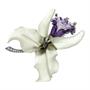 Velká luxusní zlatá brož ve tvaru orchideje vyřezávané z ametystu, křišťálu s brilianty celkové hmotnosti cca 0,20 ct. Bílé zlato ryzosti 585/1000, rozměry 8 x 6 cm, celková hmotnost brože 28,6 g. Naprosto unikátní šperk z počátku 30. let 20. století, který se dochoval ve velmi slušném stavu kromě jednoho místa - na konci jednoho lístku je patrné drobné lepení.