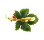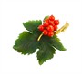 Nevšední brož - rybíz. Šperk byl zhotoven ze zlata 585/1000. Listy ručně vyřezány z nefritu, plody červené korály. Velmi jemná, detailní zlatnická práce. Celková hmotnost šperku 16,64 g. Rozměry 6,8 x 4,5 cm. Perfektní, sbírkový stav.