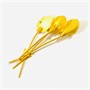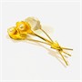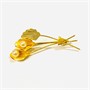 Elegantní brož v podobě svazku listu a dvou květin, které jsou osazeny bílými voskovanými perlami. Povrch pokovený vysokoryzostním matovaným zlatem, místy zušlechtěno gravírováním. Orientální zlatnická práce z druhé třetiny 20. století.