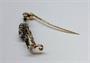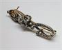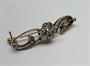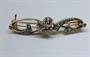 Decentní stylová secesní zlatá brož s diamanty. Celková hmotnost 3,41 g, Au 580/1000, punc liška (Z – 27), Vídeň. 3 x diamant starého briliantového brusu, průměr 0,4 cm, velikost 0,24 ct, 11 x diamant starého briliantového brusu, průměr 0,14 – 0,19 cm, 6 x diamant routového brusu, průměr 0,1 cm. Diamanty velmi dobré a dobré barvy i kvality, celkem 0,92 ct, znalecký posudek. Rakousko-Uhersko, 90. léta 19. století. Délka 3,66 cm, šířka 0,84 cm.