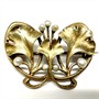 180263Zlatá secesní brož s říčními perlami - ginkgo biloba