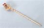 Stará secesní jehla do kravaty ze žlutého zlata s drobnými kamínky a perličkami, návrh kolem r. 1900, puncováno těžko rozlišitelně (viz foto). Délka 7 cm, váha brutto 2 g, dobrý stav bez poškození, jen mírné známky stáří a používání.