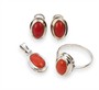 Souprava - prsten, náušnice a přívěšek - z bílého zlata ryzosti 585/1000 zdobená mořskými korály. Rozměry korálu 1 x 0,8 cm. Velikost prstene 56. Celková hmotnost soupravy 8,32 g.