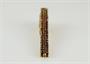 zlatá spona do kravaty s českými granáty, Au 7,68 g/585/1000, Čechy, kolem r. 2005, současná puncovní značka (labuť); rozměr 6 x 0,4 cm