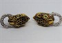 Exkluzivní dvoubarevné zlaté leopardí náušnice zdobené smalty, smaragdy a diamanty briliantového brusu. Celková hmotnost 9,40 g, Au 750/1000, punc. Pevné francouzské zapínání, výborný nenošený stav. Francie, poslední čtvrtina 20. století. Délka náušnic 2,4 cm, šířka 1,2 cm.