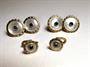 Secesní manžetové a límečkové knoflíky zdobené perletí a modrým kabašonem ve středu, ryzost 585/1000, punc liška, celková hmotnost 13,7g. Průměr manžetový knoflík 1,5cm a límečkový knoflík 0,5 cm.