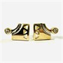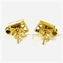 Náušnice zhotoveny ze žlutého 9 karátového zlata, tj. o ryzosti 375/1000, nově přidané puzety ze žlutého 14 karátového zlata, tj. o ryzosti 585/1000; nově opatřeno puncem Z-59 (písmeno Z s alchymistickou růží), ryzostní číslo na puzetách. Hmotnost 1,58 g, délka 11 mm, šířka 7 mm. Puzetové zapínání v pořádku, ve velmi zachovalém stavu, odborně vyčištěno a vyleštěno zlatníkem.