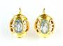 Náušnice v kombinaci žlutého a růžového zlata ryzosti 585/1000 jsou osazeny bleděmodrými akvamariny. Celková hmotnost obou náušnic je 3,68 g. Délka 18 mm. Rozměry 10 x 14 mm.