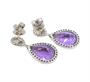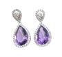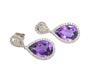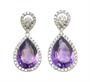 Výrazné visací náušnice z bílého zlata ryzosti 750/1000 zdobené přírodními ametysty o celkové hmotnosti 8,86 ct a diamanty briliantového brusu o celkové hmotnosti 0,90 ct (SI-PI/H). Rozměry 2,8 x 1,3 cm. Celková hmotnost 5,60 g.