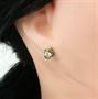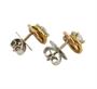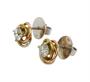 Zajímavé náušnice zhotovené ze tří druhů zlata (žluté, bílé, růžové) ryzosti 585/1000. V každé náušnici je zasazen přírodní diamant briliantového brusu hmotnosti 0,35 ct. Průměr náušnice 8 mm, celková hmotnost obou náušnic 2,90 g.