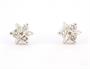 Náušnice z bílého zlata ve tvaru kytiček o ryzosti 585/1000 zdobené brilianty o celkové hmotnosti 0,12 ct. Rozměr zdobné části 0,5 cm. Celková hmotnost obou náušnic 1 g.