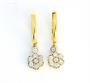 Zlaté náušnice s motivem kytiček ze zlata ryzosti 585/1000 zdobené diamanty briliantového brusu o celkové hmotnosti 0,65 ct.. Diamanty jsou osazené v bílém zlatě. Rozměry ozdobné kinetické části náušnice 1,3 x 0,8 cm, celková délka náušnice 3 cm. Hmotnost náušnic 5,45 g. Zapínání s pojistkou. Kvalitní zlatnická práce.