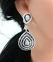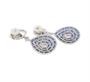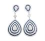 Monumentální velmi výrazné visací náušnice z bílého zlata ryzosti 750/1000 zdobené diamanty briliantového brusu o celkové hmotnosti 5,04 ct (SI-PI/H) a safíry o celkové hmotnosti 10,70 ct. Rozměry 6 x 2,7 cm. Celková hmotnost 21,68 g. Francouzský typ zapínání, velmi dobře drží.