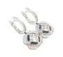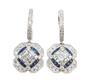 Náušnice z bílého zlata ryzosti 750/1000 s pohyblivými ověsy zdobené diamanty briliantového a bagetového brusu o celkové hmotnosti 2,20 ct (SI-PI/H) a safíry o celkové hmotnosti 0,45 ct. Rozměry 2,8 x 1,4 cm. Celková hmotnost 8,72 g.