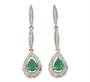Visací náušnice z bílého zlata ryzosti 585/1000 zdobené diamanty briliantového brusu o celkové hmotnosti 0,45 ct (SI/H) a smaragdy. Rozměry 3,1 x 0,8 cm. Celková hmotnost 3,04 g.