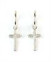 Visací náušnice ve tvaru křížku z bílého zlata ryzosti 750/1000 zdobené 36 brilianty bílé barvy G o celkové hmotnosti 0,19 ct. Rozměry křížku 1,5 x 0,9 cm. Celková hmotnost 3,07 g.
