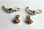 Zlaté náušnice s diamanty s oddělitelnou - navlékací spodní částí, umožňující kombinované nošení. Celková hmotnost btto 6,15 g, Au 585/1000, československý punc, 4 x diamant starého briliantového brusu o průměru 4,5 mm, hmotnost 0,34 ct, 4 x diamant starého briliantového brusu o průměru 2 mm, hmotnost 0,03 ct, celkem 1,48 ct, brus VG - G, čistota SI, znalecký posudek, celková délka náušnic 2,3 cm, bez spodní části 1,7 cm, šířka náušnic cca 0,75 cm, klasické pevné klapkové zapínání. Československo, 30. léta 20. století.