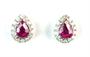 Náušnice ve tvaru kapky z bílého zlata ryzosti 585/1000 zdobené diamanty briliantového brusu o celkové hmotnosti 0,14 ct a dvěma rubíny o celkové hmotnosti 0,36 ct.