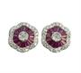 Náušnice ve stylu Art Deco jsou zhotoveny z bílého zlata ryzosti 585/1000 a jsou osazeny diamanty briliantového brusu SI-PI/H o celkové hmotnosti 0,44 ct a rubíny bagetového brusu. Celková hmotnost obou náušnic je 3,20 g. Průměr 1,1 cm.