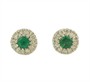 Náušnice z bílého zlata ryzosti 585/1000 zdobené diamanty o celkové hmotnosti 0,06 ct a smaragdy o hmotnosti 0,10 ct. Celková hmotnost obou náušnic je 1,16 g. Průměr 0,5 cm.