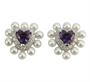 Náušnice ve tvaru srdce jsou zhotoveny z bílého zlata ryzosti 585/1000 a jsou osazeny diamanty briliantového brusu SI/H o celkové hmotnosti 0,36 ct a dále ametysty ve svém středu a perlami po obvodu. Celková hmotnost obou náušnic je 3,30 g.