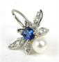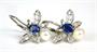 Náušnice z bílého zlata ryzosti 585/1000 zdobené 24 diamanty o celkové hmotnosti 0,20 ct (barva H, čistota PI), 2 safíry o celkové hmotnosti 0,40 ct a 2 kultivovanými perlami. Celková hmotnost náušnic: 2,07 g. Délka náušnic: 1,8 cm.