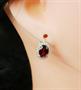 Náušnice z bílého zlata ryzosti 585/1000 zdobené diamanty o celkové hmotnosti 0,24 ct a granáty o hmotnosti 2,69 ct. Celková hmotnost obou náušnic je 2,65 g. Rozměry ozdobné části 1 x 0,8 cm.