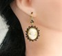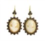Elegantní společenské náušnice ze žlutého zlata ryzosti 585/1000 zdobené velmi detailně propracovanými kamejemi a českými granáty. Celková hmotnost náušnic je 17,05 g. Délka náušnice je 4,8 cm.