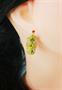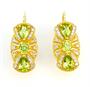 Výrazné, elegantní náušnice za žlutého zlata ryzosti 585/1000 (punc labuť) jsou zdobeny šesti zelenými peridoty (olivíny) a brilianty celkové hmotnosti 0,25 ct. Celkový hmotnost náušnic 6,46 g. Rozměry náušnice 2 x 1,1 cm.