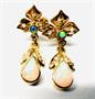Dekorativní, velmi půvabné náušnice se zapínání na puzetu. Zhotoveny v Portugalsku ze zlata ryzosti 800/1000, o celkové váze 3,81 g. Náušnice zdobí krásně zbarvený opál a 10 drobných diamantových rout. Délka cca 2,2 cm. Profesionálně vyčištěno zlatníkem, perfektní stav.
