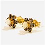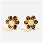 Půvabné, decentní náušnice v podobě šetilistého květu, uprostřed osazeno kulatou muglí přírodního bílého opálu, ryté lístečky zvýrazněny černým smaltem. Mimoevropská zlatnická práce z poslední třetiny 20. století.