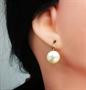 Náušnice ze zlata ryzosti 585/1000 (punc labuť) zdobené perlami. Průměr 1,2 cm. Celková hmotnost náušnic 5,92 g.