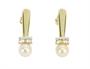 Náušnice ze žlutého zlata ryzosti 585/1000 zdobené perlami a čtyřmi brilianty (celkem cca 0,20 ct). Rozměry 2,2 x 0,5 cm. Celková hmotnost 3,52 g.