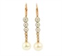 Visací náušnice z růžového zlata ryzosti 585/1000 jsou osazeny perlami a diamanty briliantového brusu o celkové hmotnosti 0,20 ct. Celková hmotnost obou náušnic je 3,06 g. Délka náušnice 3,9 cm.