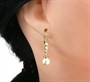 Visací náušnice ze žlutého zlata ryzosti 585/1000 jsou osazeny perlami a diamanty briliantového brusu o celkové hmotnosti 0,20 ct. Celková hmotnost obou náušnic je 3,04 g. Délka náušnice 3,3 cm.