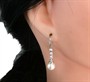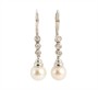 Visací náušnice z bílého zlata ryzosti 585/1000 jsou osazeny perlami a diamanty briliantového brusu o celkové hmotnosti 0,20 ct. Celková hmotnost obou náušnic je 3,04 g. Délka náušnice 3,3 cm.