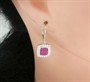 Náušnice z bílého zlata ryzosti 585/1000 s rubíny a diamanty briliantového brusu o celkové hmotnosti 0,60 ct. Celková hmotnost obou náušnic je 3,05 g. Rozměry ověsné části 1,1 x 1,1 cm.