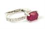 Náušnice z bílého zlata ryzosti 750/1000 jsou zdobeny přírodními rubíny a diamanty briliantového brusu celkové hmotnosti 0,14 ct. Barva G. kvalita VS. Celková hmotnost náušnic 2,24 g.