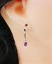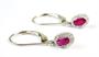 Náušnice z bílého zlata ryzosti 585/1000 zdobené 28 diamanty o celkové hmotnosti 0,14 ct a přírodními rubíny o celkové hmotnosti 0,60 ct. Celková hmotnost obou náušnic je 1,46 g. Rozměry ozdobné části 0,8 x 0,6 cm