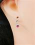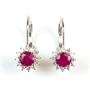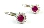 Náušnice z bílého zlata ryzosti 585/1000 zdobené diamanty o celkové hmotnosti 0,14 ct a rubíny o celkové hmotnosti 0,65 ct. Celková hmotnost obou náušnic je 1,42 g. Průměr ozdobné části 0,7 cm.