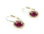 Náušnice z bílého zlata ryzosti 585/1000 zdobené diamanty o celkové hmotnosti 0,16 ct a rubíny o celkové hmotnosti 0,58 ct. Celková hmotnost obou náušnic je 1,46 g. Rozměry ozdobné části 0,8 x 0,6 cm