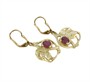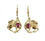 Náušnice ze žlutého zlata ryzosti 585/1000 (punc labuť) v secesním stylu s rubíny celkové hmotnosti 1,39 ct a drobnými diamanty. Délka náušnice je 3,4 cm. Celková hmotnost obou náušnic je 4,90 g. K rubínům thajský certifikát.